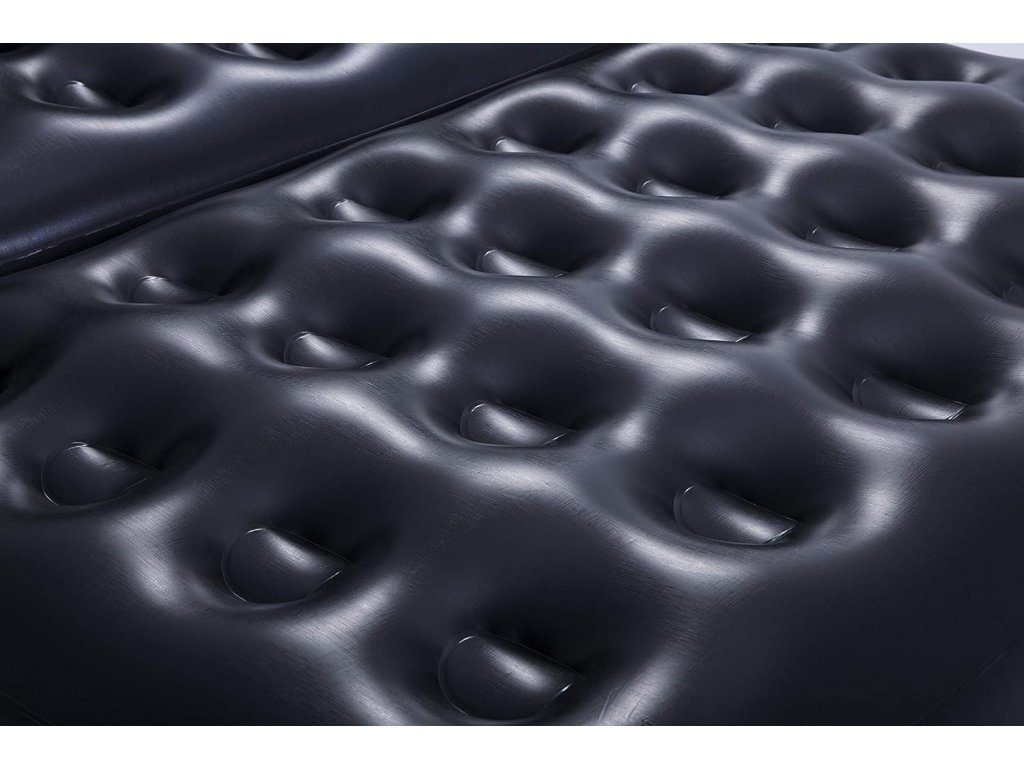 Vzduchová pohovka je vyrobena z odolného PVC a má robustní vnitřní konstrukci ze spirálových nosníků se třemi vzduchovými komorami, které zaručují stabilitu a odolnost.