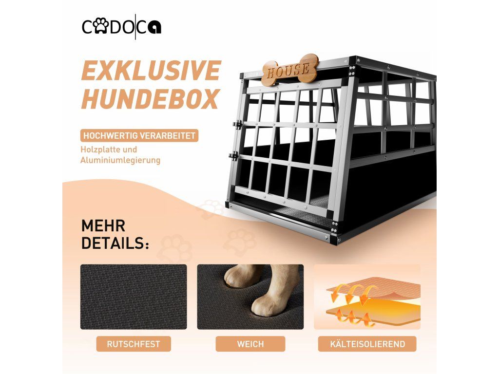 Vyrazte na cesty s jistotou, že je váš mazlíček v bezpečí. Přepravka CADOCA® o rozměrech 70 × 54 × 51 cm nabízí stabilní konstrukci, komfortní prostor a maximální bezpečnost při přepravě autem. Ideální řešení pro každého, kdo chce cestovat se svým psem pohodlně a bez stresu.