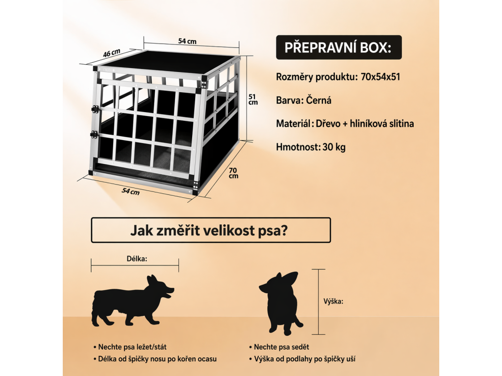 - Rozměry 70 × 54 × 51 cm ideální pro bezpečný převoz psa