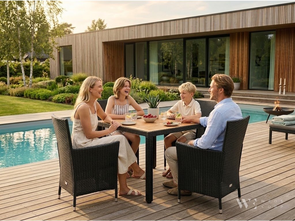 Zakřivené područky, široká opěradla a 7 cm silné sedáky zajišťují optimální pohodlí při sezení. Židle v sedací soupravě unesou až 160 kg a lze je stohovat pro úsporu místa. Deska stolu z akáciového dřeva dodává sedací soupravě moderní a teplý vzhled, který se dokonale hodí do každé zahradní oázy.