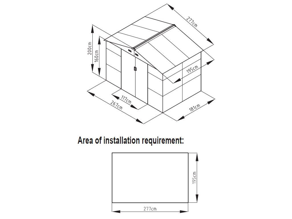 - Celkový rozměr se střechou (DxHxV): 277 x 195 x 200 cm