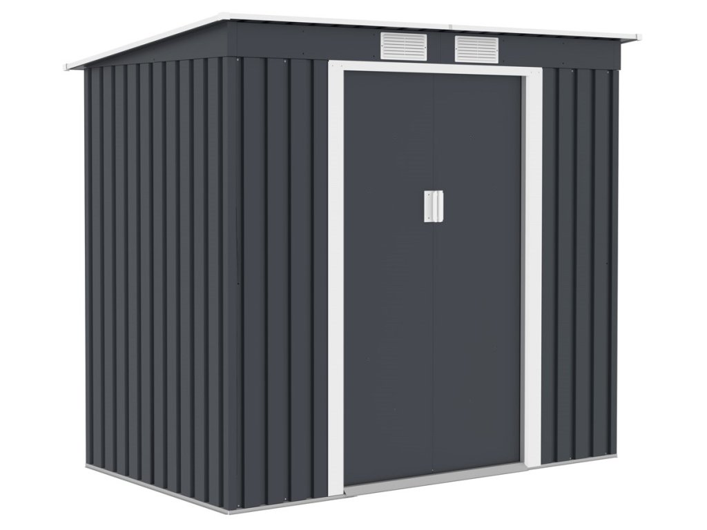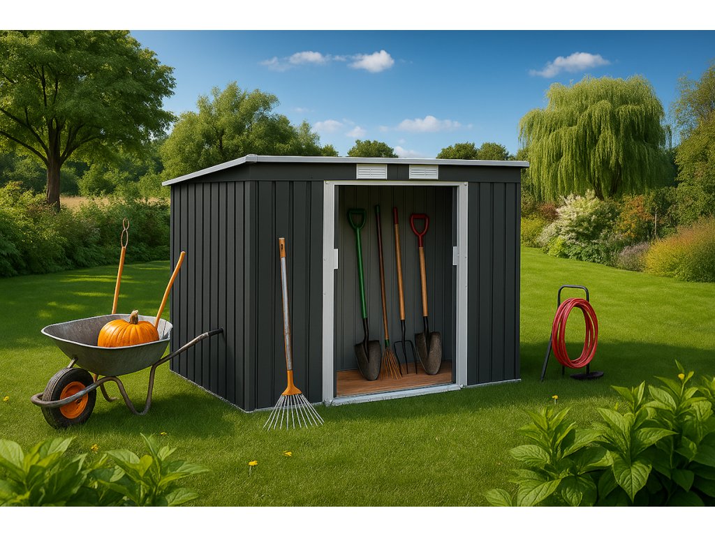 Zahradní domek značky Crossheim v antracitové (tmavě šedá) barvě nabízí dostatek místa pro kola, nářadí a veškeré zahradní vybavení, má posuvné dveře, větrací otvory a je dodáván s podlahovou lištou. Zahradní domek je ideální pro celoroční uskladnění zahradního nářadí popřípadě jiného vybavení.