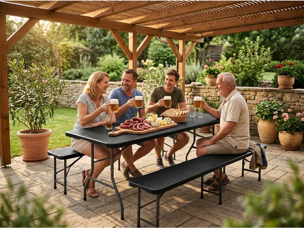 Crossheim Pivní set plastový skládací 180cm černá splňuje všechny normy EU.