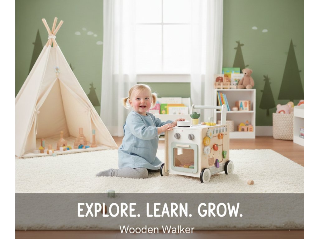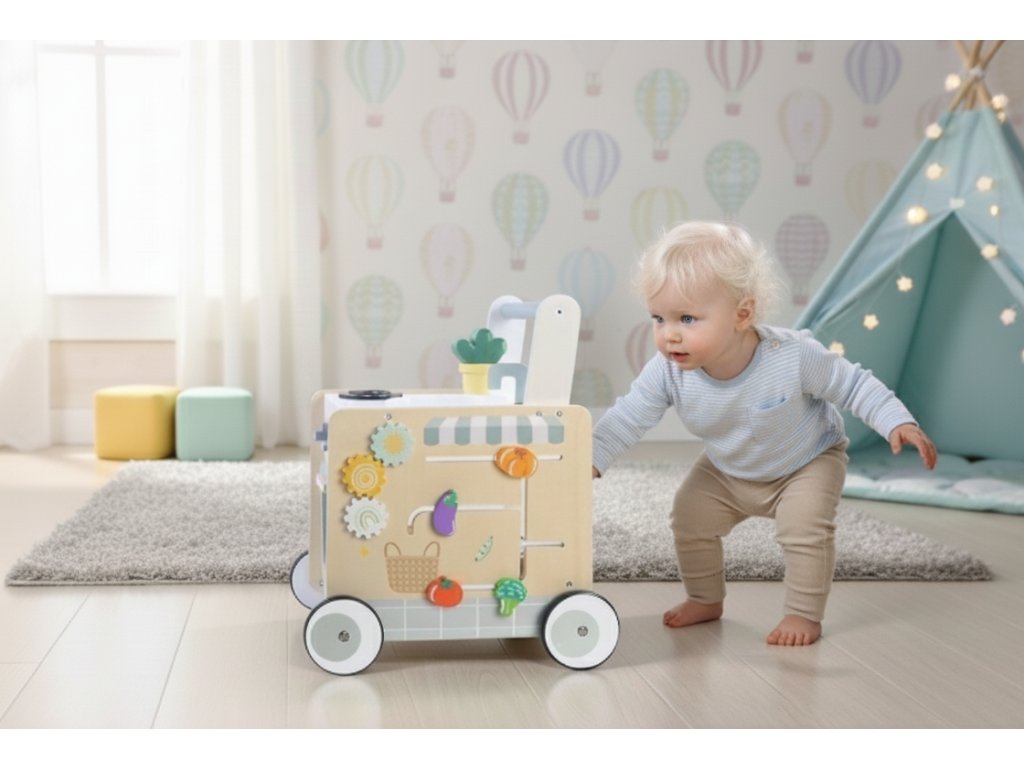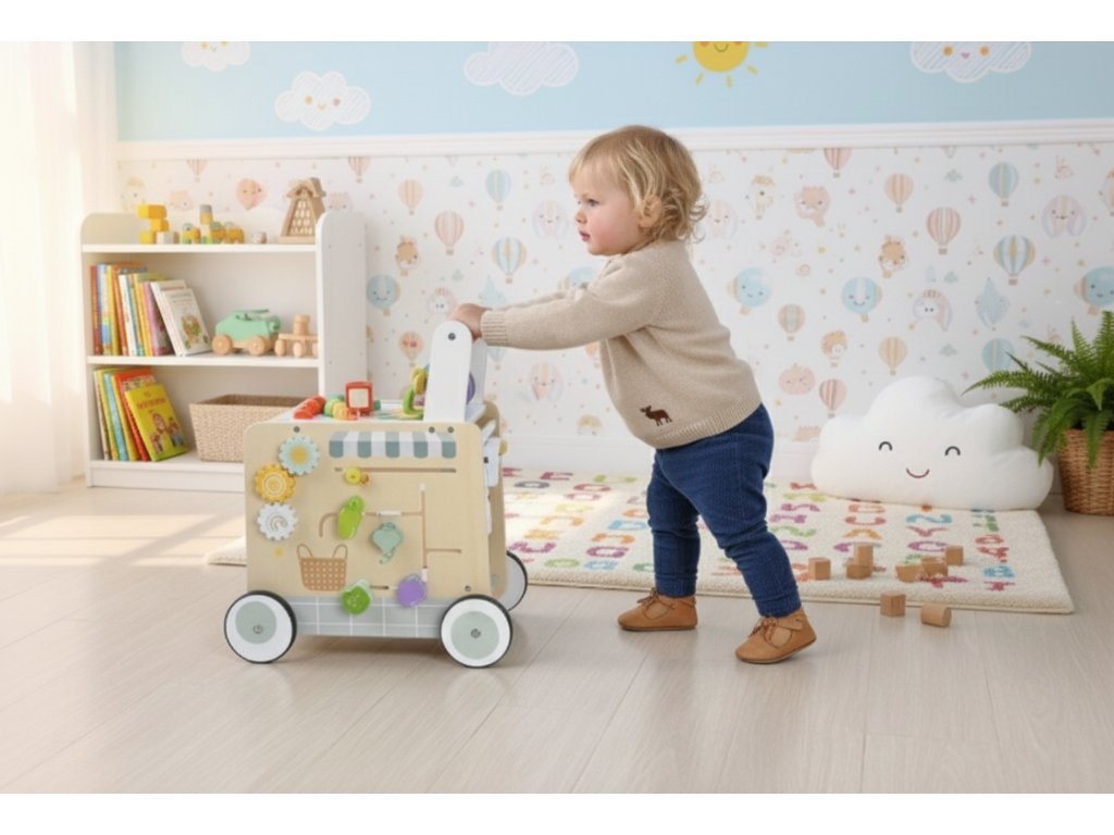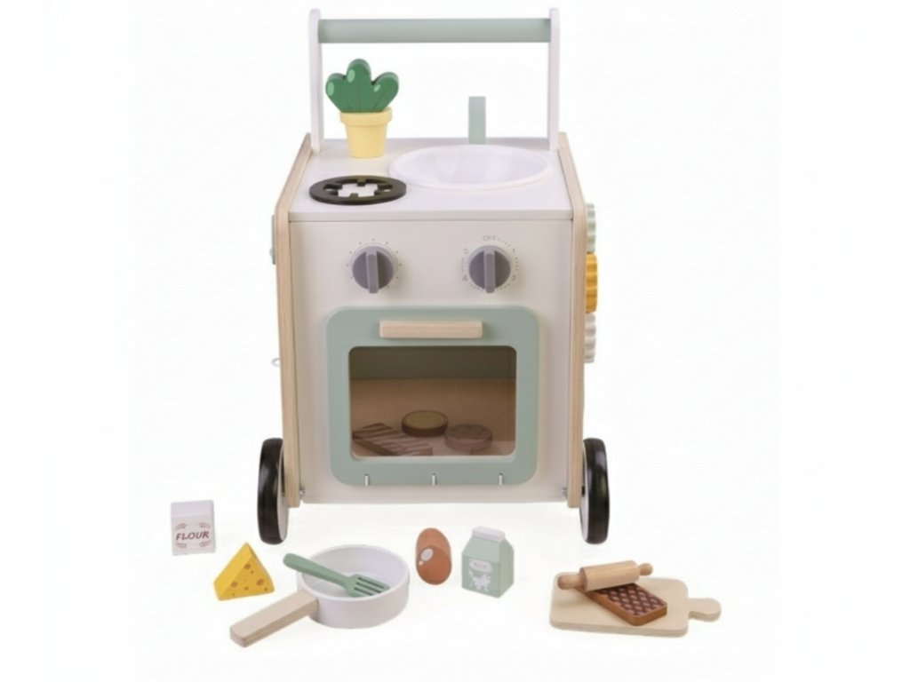 Toto nápadité dřevěné chodítko je hravý pomocník pro první krůčky i kulinářské dobrodružství! Objevte kouzelné spojení kuchyňky a chodítka v jednom!