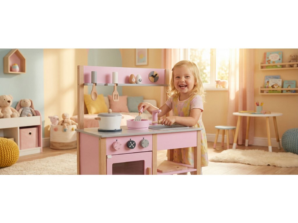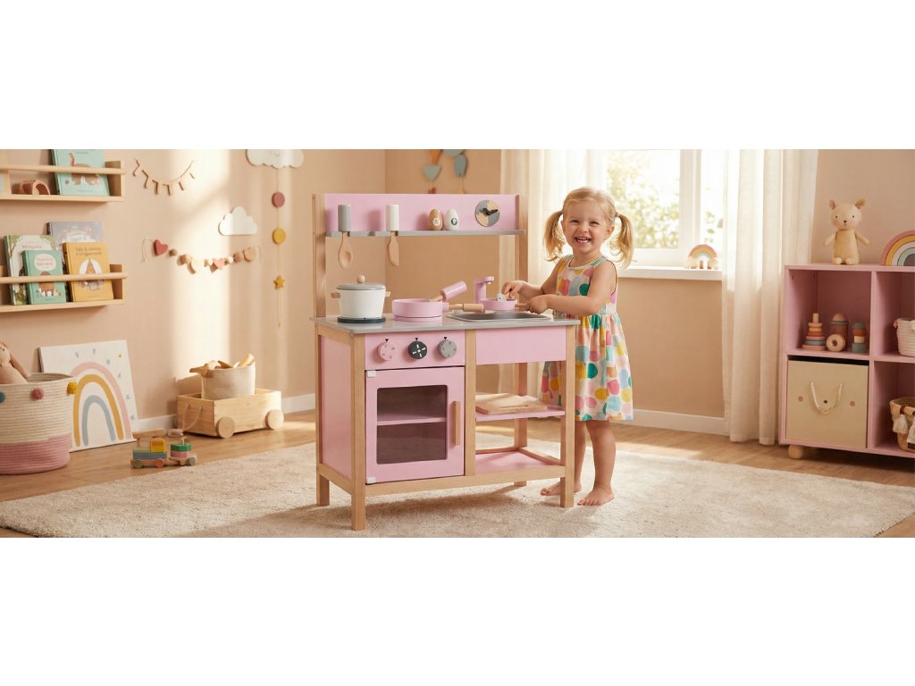 Krásná růžová kuchyňka pro malé kuchařky!