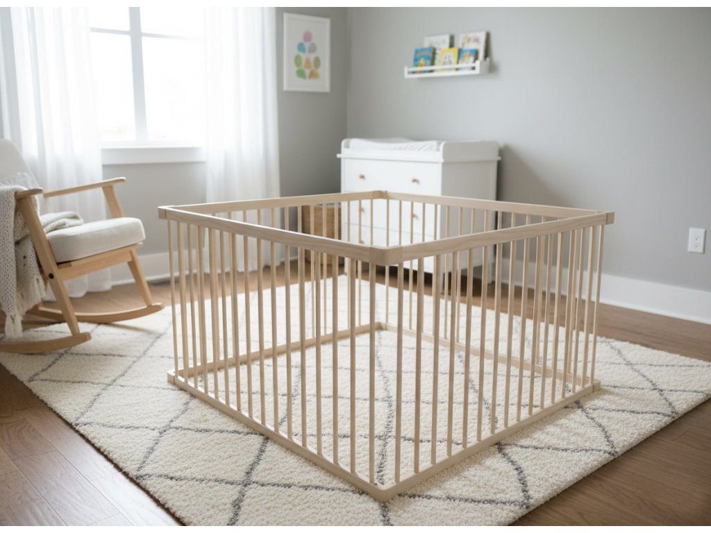Derrson Dětská dřevěná ohrádka 120 x 120 cm přírodní