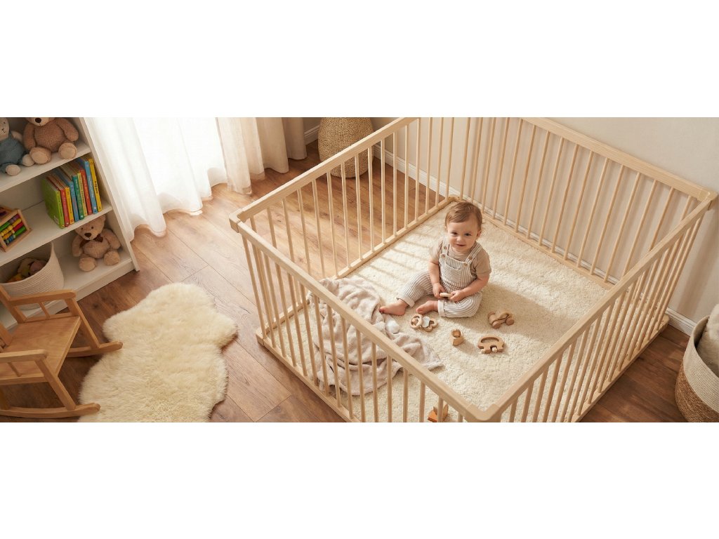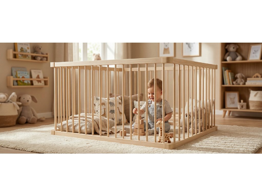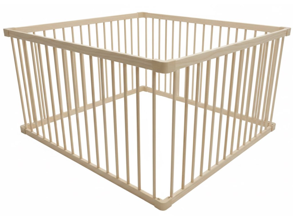 Kvalitní a cenově dostupná ohrádka z masivního dřeva o velikosti 120 x 120 cm: