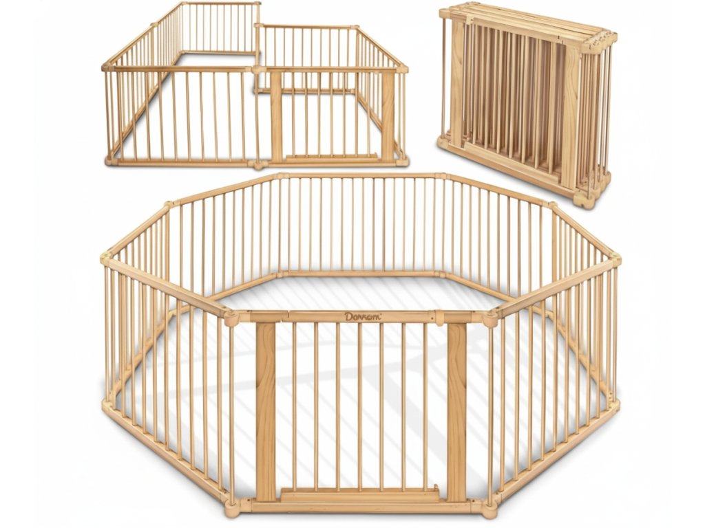 Unikátní ohrádka z masivního dřeva od Derrson nevyžaduje žádnou montáž. Jednoduše vytáhnete z krabice, pomocí přítlačného a bezpečného mechanismu složíte požadovaný tvar a můžete začít používat během 5 minut.