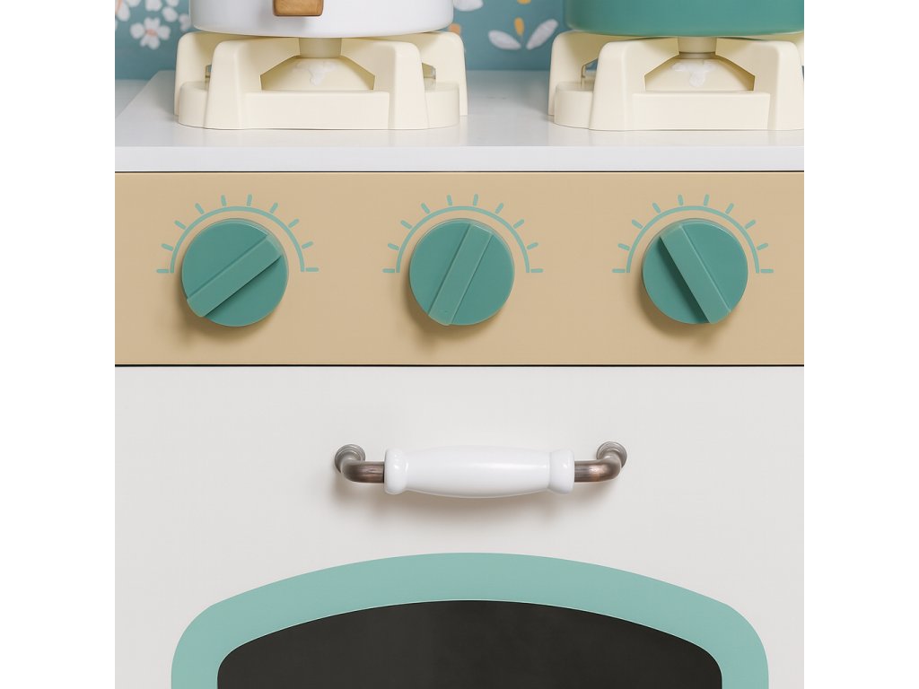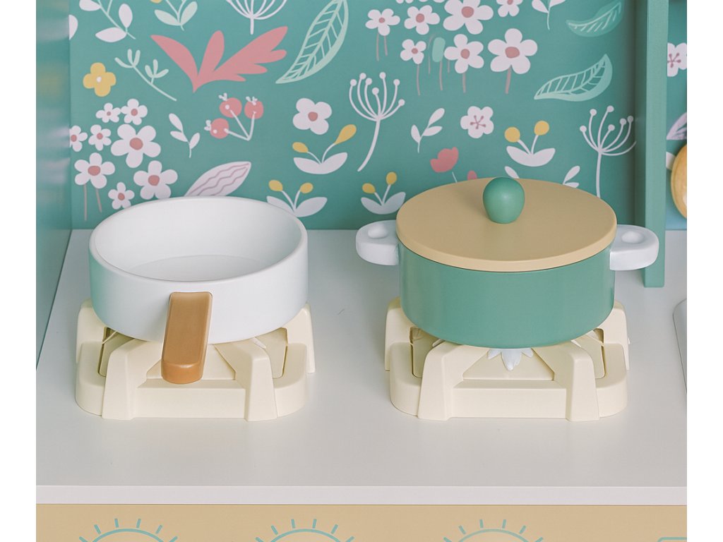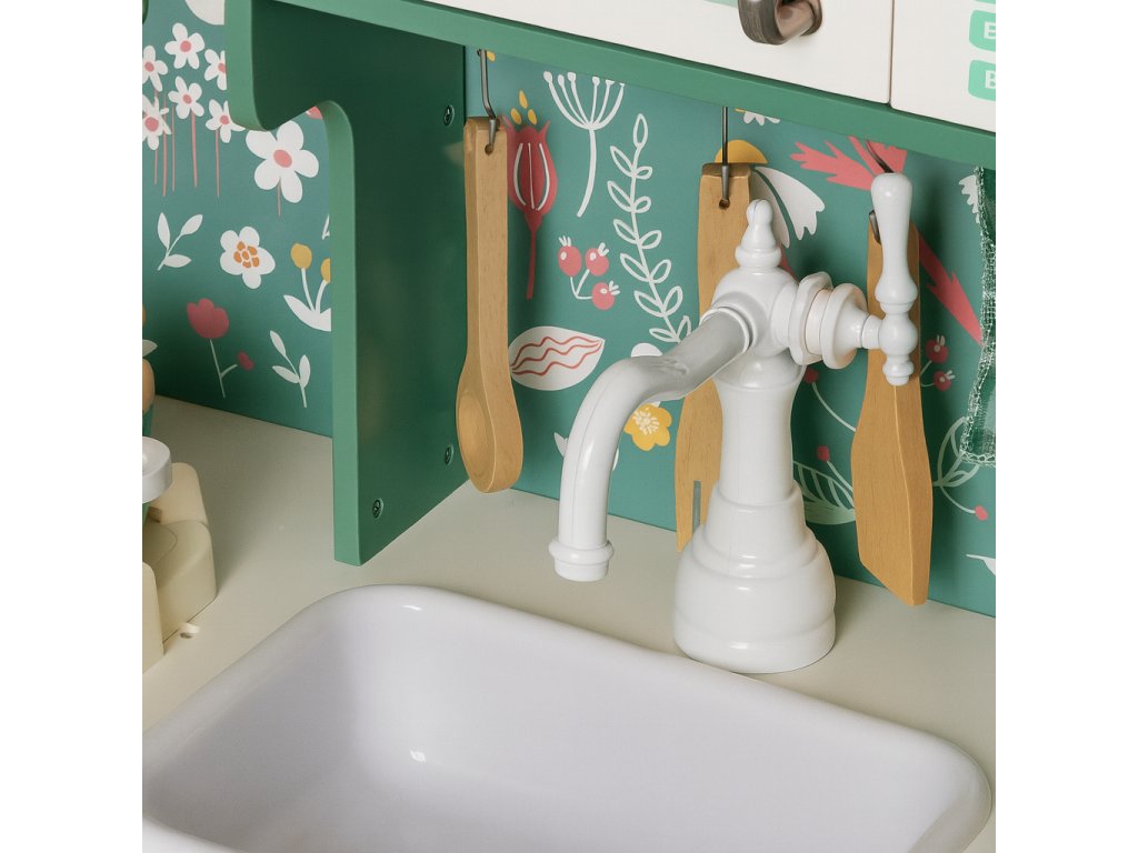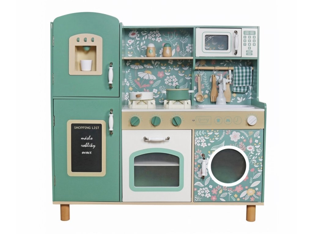 Zelená kuchyňka značky Derrson s květinovým vzorem zaujme malé i velké kuchtíky svým bohatým příslušenstvím a také originálním vzhledem ve Vintage stylu. Díky této kuchyňce budou mít vaše děti možnost ocitnout se v roli šéfkuchaře a bezpečně si vyzkoušet aktivity dospělých, které tolik touží napodobovat.