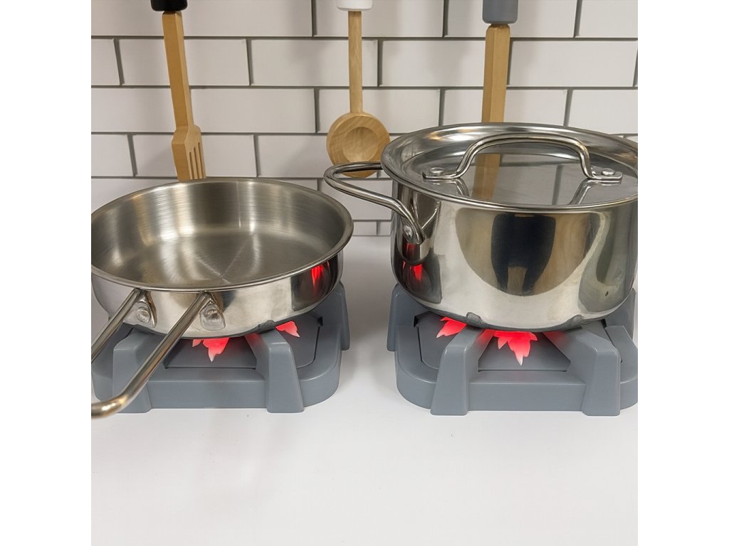 Díky interaktivním funkcím – světelné a zvukové efekty na hořácích, digestoři a pračce, automatický systém cirkulace vody či funkční výrobník ledu – je vaření v této kuchyňce ještě zábavnější a realističtější.