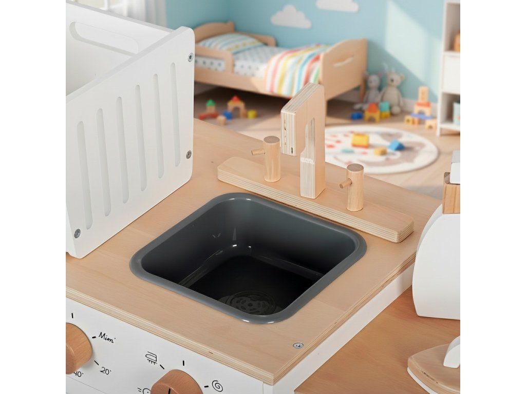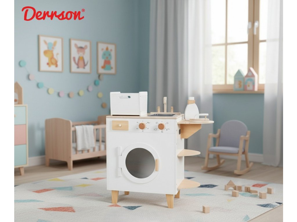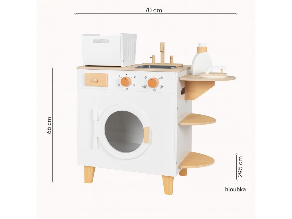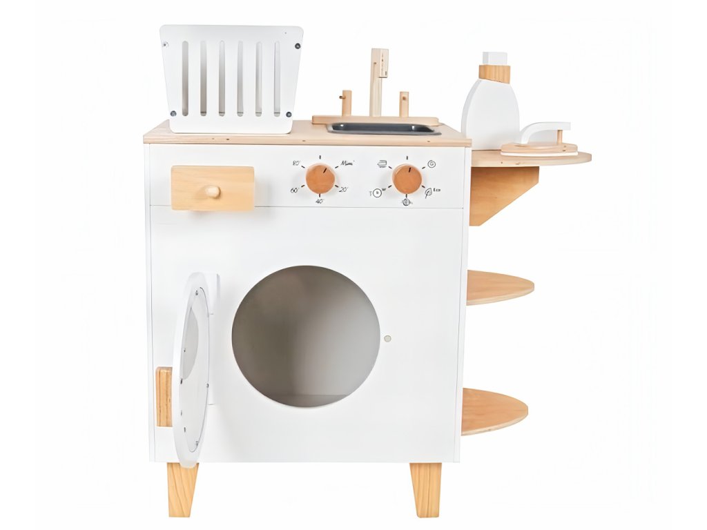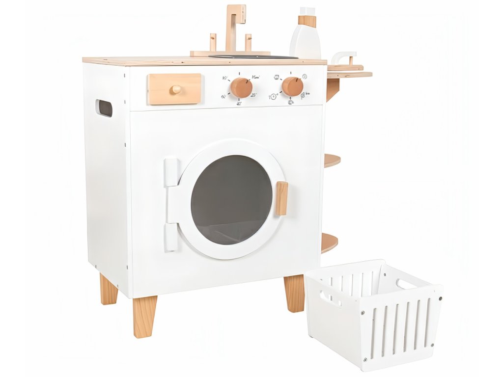 Tato dětská pračka ze dřeva podporuje představivost, plánování i jemnou motoriku. Děti se naučí, jak funguje pračka, jak organizovat prostor a proč je důležité udržovat čistotu. Hra na domácnost rozvíjí samostatnost i schopnost spolupracovat a budovat vztahy.