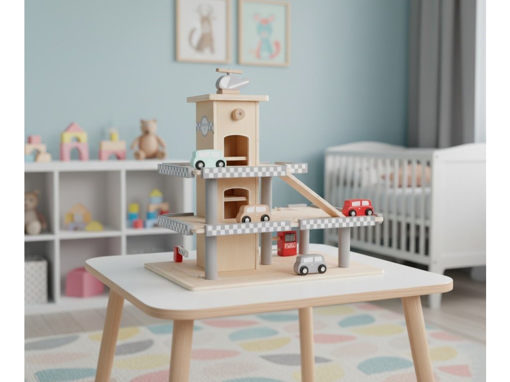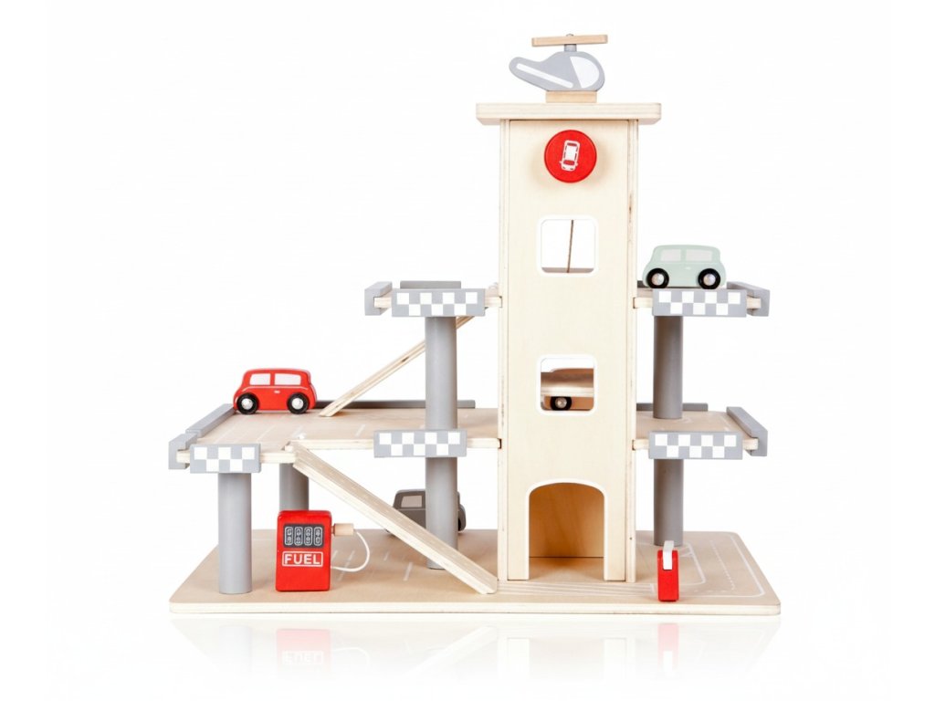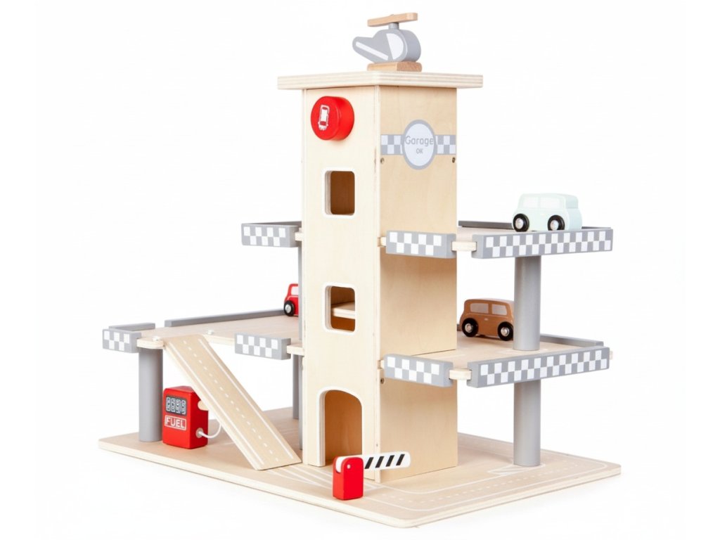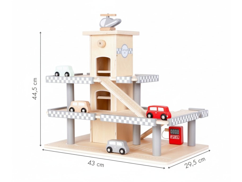 Dřevěná třípodlažní garáž s výtahem potěší především všechny kluky. Tato garáž nabízí dostatek prostoru na parkování všech oblíbených kousků.