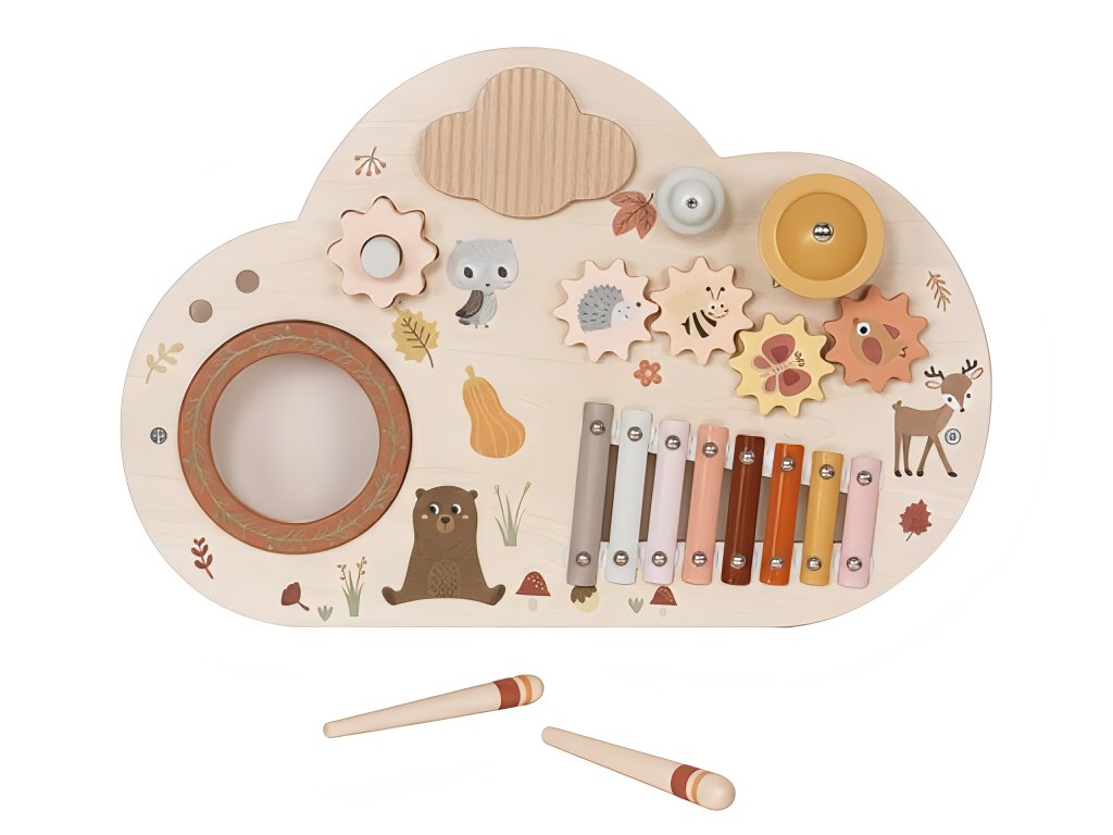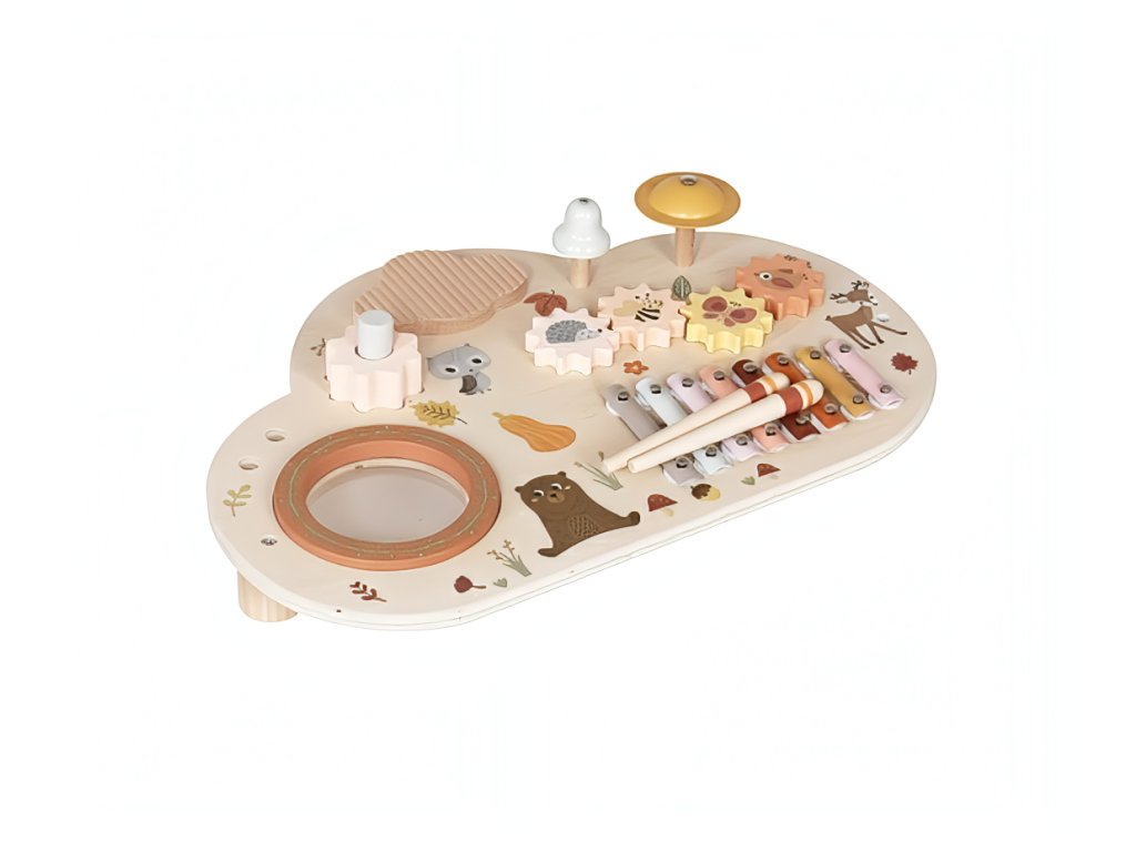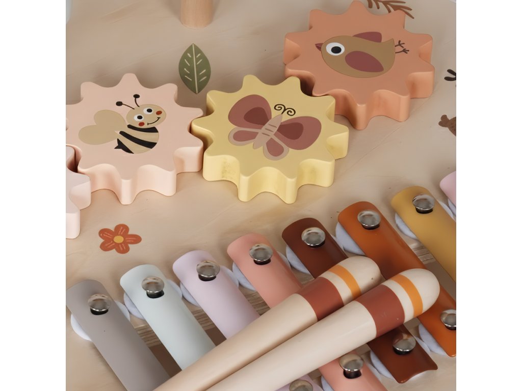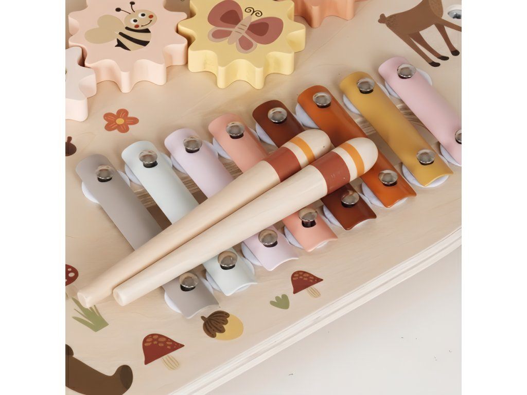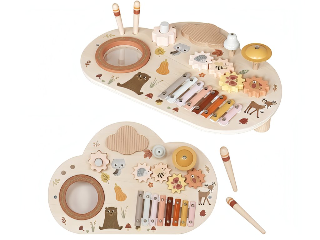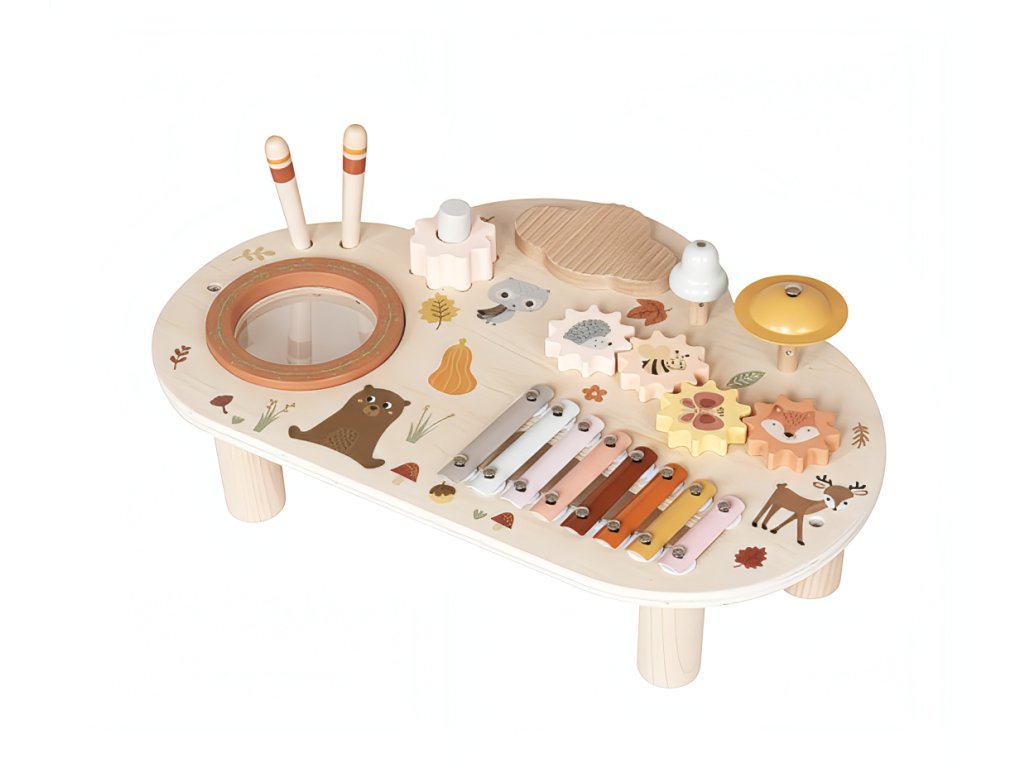 Dřevěný hudební stolek se sadou 5 dětských hudebních nástrojů okouzlí svými designem, barvami i roztomilým lesním motivem každou holčičku i chlapce. Originální hudební stoleček se zvířátky probudí lásku k hudbě v každém dítku. Stoleček s hudebními nástroji přinese radost do každého dětského pokoje a hned tak děti neomrzí - hrát totiž mohou hned na 5 hudebních nástrojů.