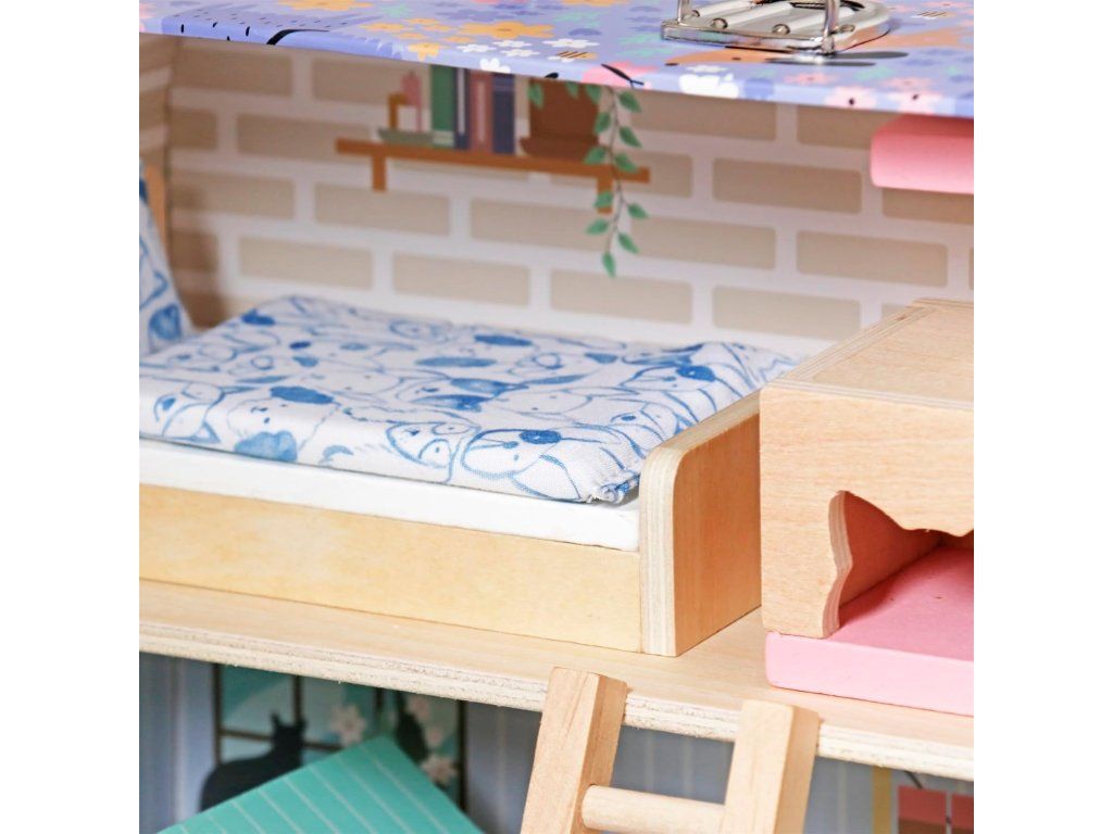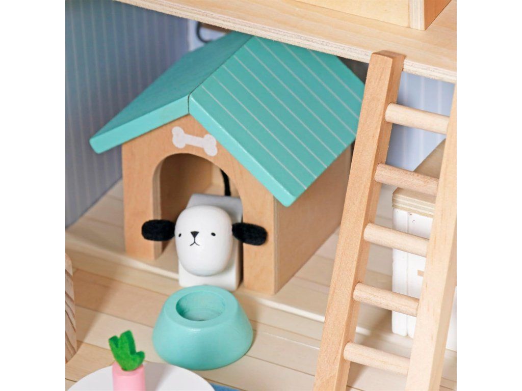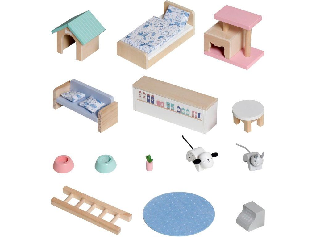 Součástí balení je široká škála doplňků, které oživí každou hru – nábytek, dekorace i zvířátka. Děti si mohou hrát se psem, kočkou, postelí, pohovkou, stolem, květináčem, pelíškem, krmítkem, kobercem, polštářem a dalšími prvky.