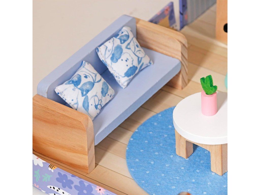 Celá sada je vyrobena z odolného a bezpečného dřeva. Precizní zpracování v jemných pastelových barvách působí esteticky a zároveň vydrží každodenní hraní.