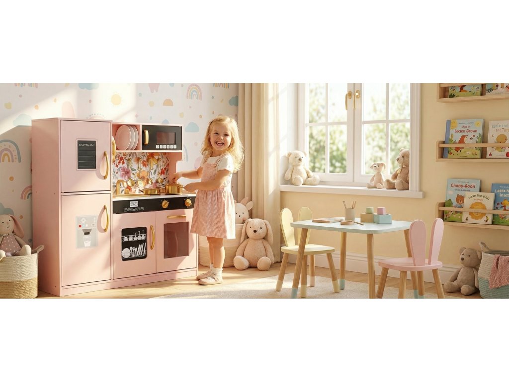 Tato kuchyňka je vyrobena s důrazem na každý detail. Není to jen hračka – je to nevyčerpatelný zdroj zábavy, vzdělávání a rozvoje dětské fantazie i dovedností.