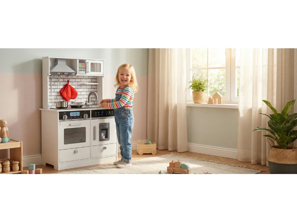 Exkluzivní model dřevěné kuchyňky značky Derrson ve velikosti XL. Interaktivní provedení - kuchyňka má řadu funkcí včetně příslušenství a spolu s moderním vzhledem tvoří neodolatelnou kuchyňskou sadu. Tato kuchyňka obsahuje kompletní kuchyňské vybavení, mikrovlnou troubu, troubu, lednici, varné interaktivní hořáky a řadu pohyblivých prvků. Jedná se o kvalitní dřevěnou konstrukci. Děti milují hračky, díky nimž se cítí jako dospělí. Kuchyňka vydává zvuky a svítí.
