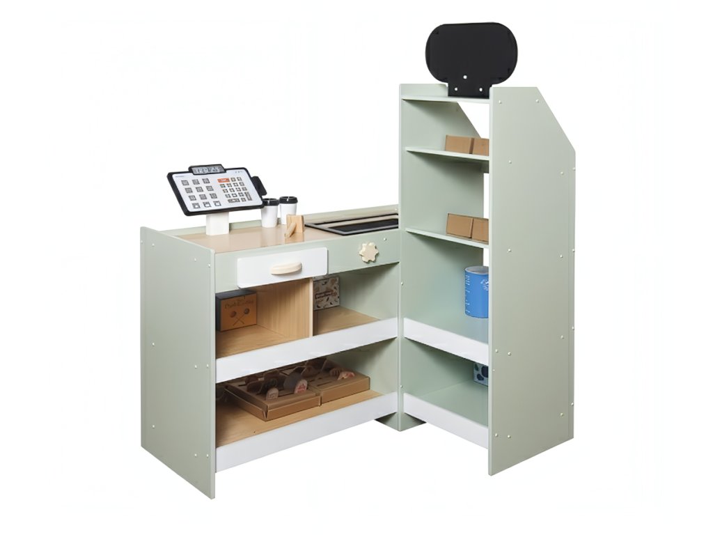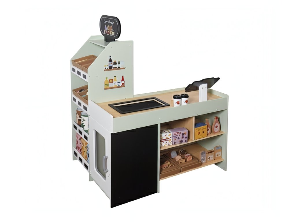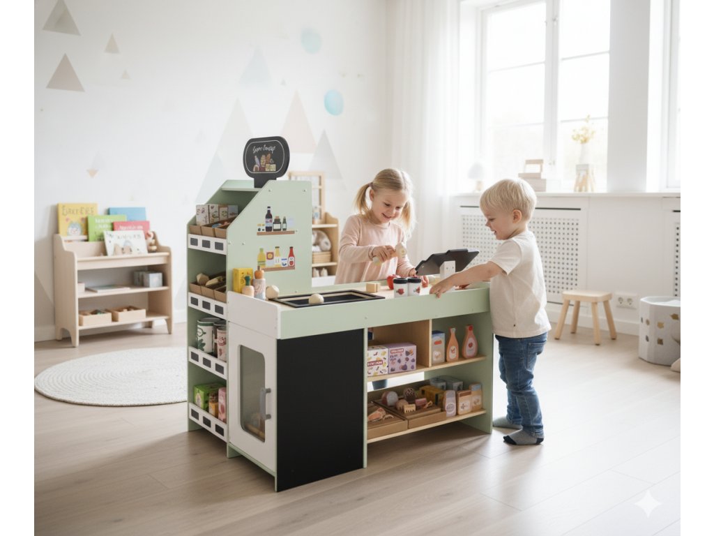 Hračka Derrson XXL dřevěný dětský obchod interaktivní s příslušenstvím zelený W5365 splňuje všechny normy EU.