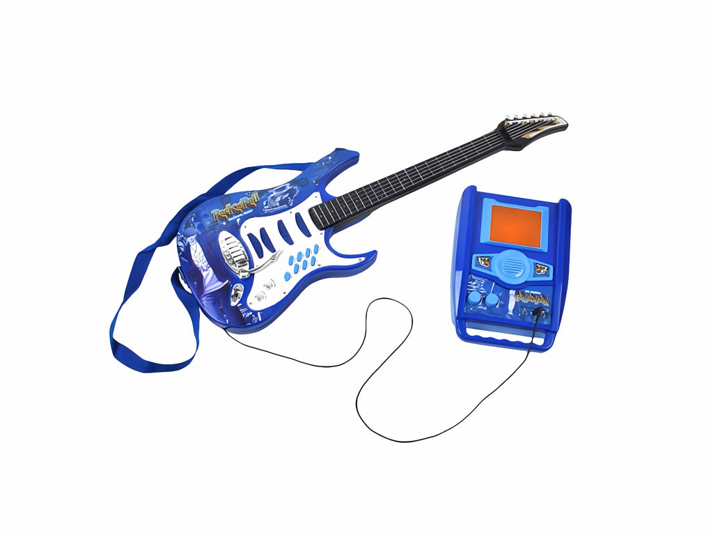 iMex Toys Dětská rocková elektrická kytara na baterie + zesilovač a mikrofon modrá