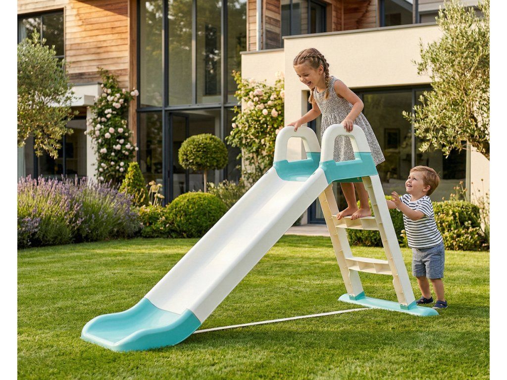 Součástí skluzavky je madlo, díky kterému mohou děti bezpečně vylézt a následně se sklouznout. Montáž a údržba je velmi jednoduchá. Díky této skvělé skluzavce už nemusíte chodit do dětského parku či na hřiště.