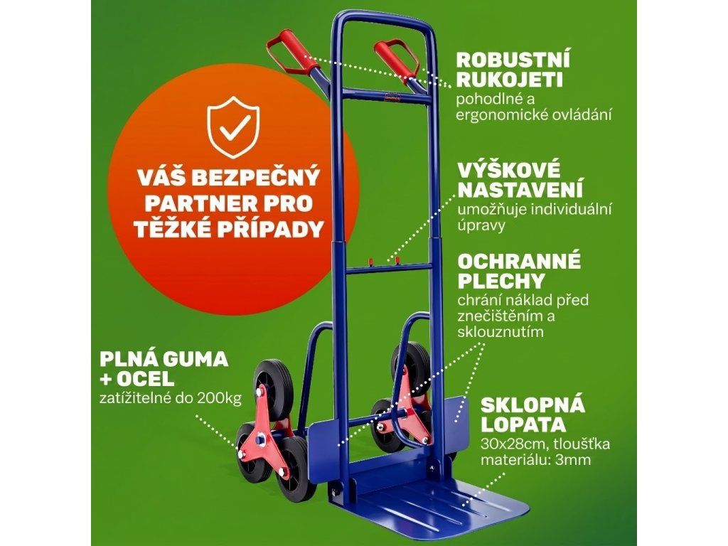Schodišťová rudla je řešením pro přepravu, logistiku a domácnost. S rudlou po schodišti můžete pohodlně přepravovat těžké náklady přes schody. Bezpečnostní rukojeti z plastu a ocelový trubkový rám zajišťují bezpečnou přepravu.
