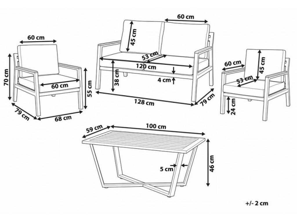 Sada obsahuje pohodlnou pohovku, dvě křesla a prostorný stůl ideální pro rodinné obědy, večerní grilování či posezení s přáteli. Pro dokonalé pohodlí jsme přidali 8 měkkých polštářů z kvalitní bavlny, které jsou příjemné na dotek, odolné a snadno udržovatelné. Potahy se zipem jednoduše sundáte a vyperete, zatímco výplň z prémiové čalounické pěny zajistí maximální komfort při každém posezení.