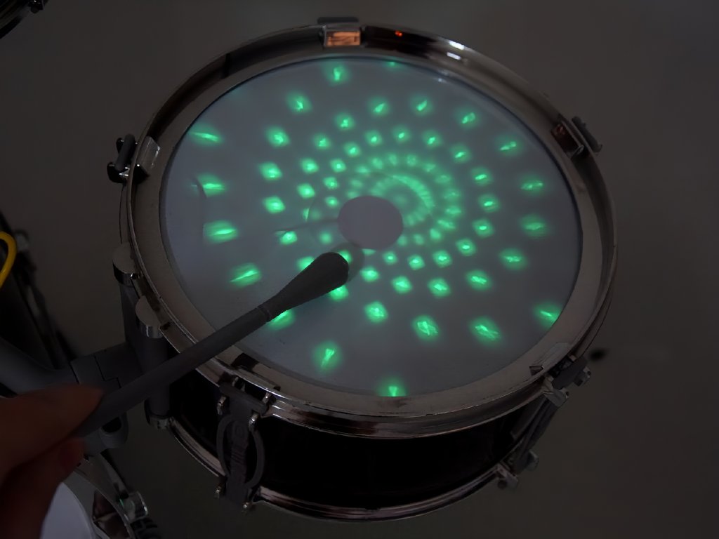 - světelné a zvukové efekty při úderech paličkami do bubnů