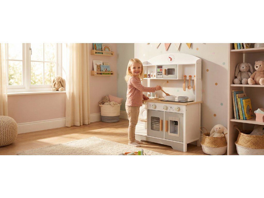 Děti rády napodobují dospělé při jejich každodenních činnostech. Vaření k nim bezpochyby patří! Velká dřevěná kuchyň je splněným snem mnoha dětí. Vyrobeno s velkou péčí, potěší detaily a praktičností!