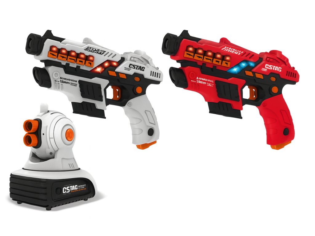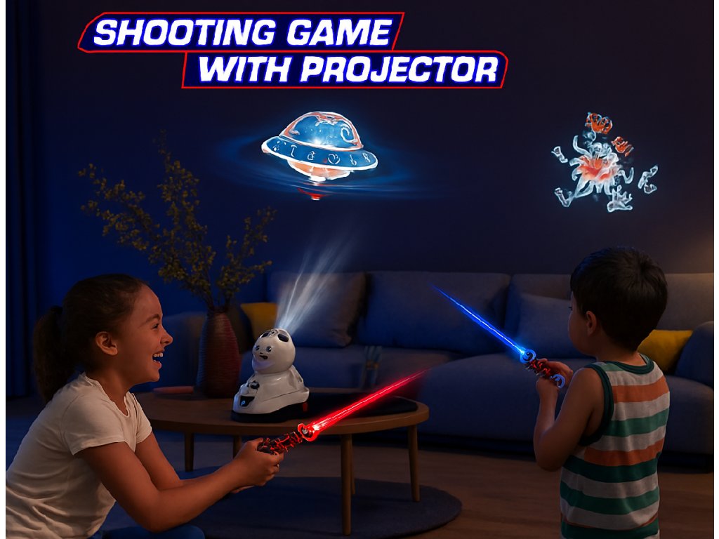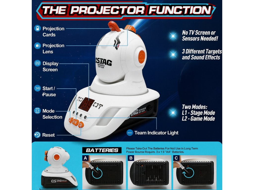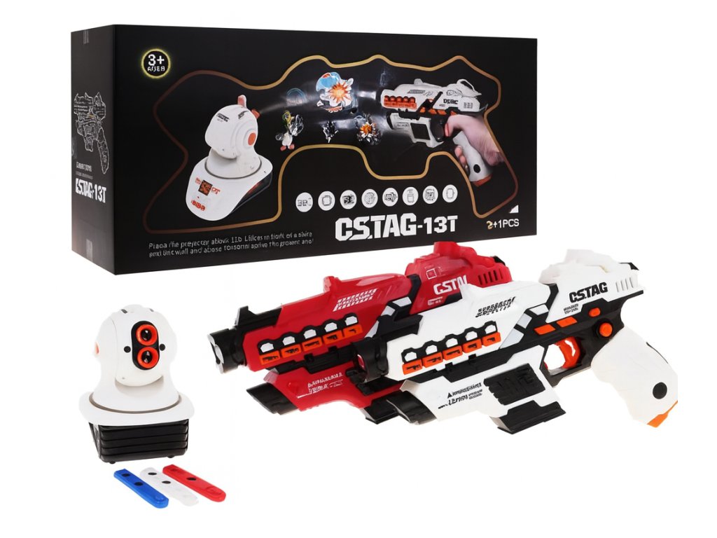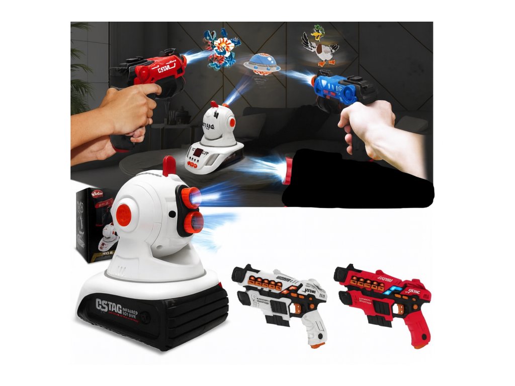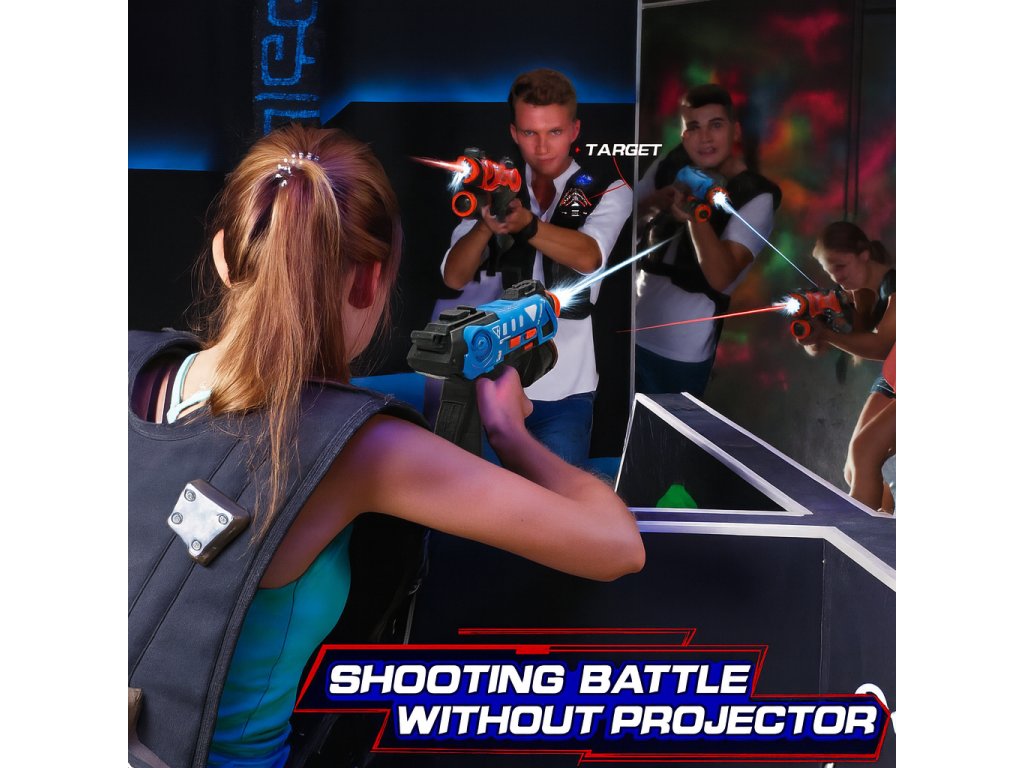 Sada obsahuje 2 laserové pistole a projektor. S touto soupravou můžete střílet na sebe nebo na obrázky generované projektorem. Na výběr je pět režimů střelby, přičemž lze sestavit 2 až 4 týmy.