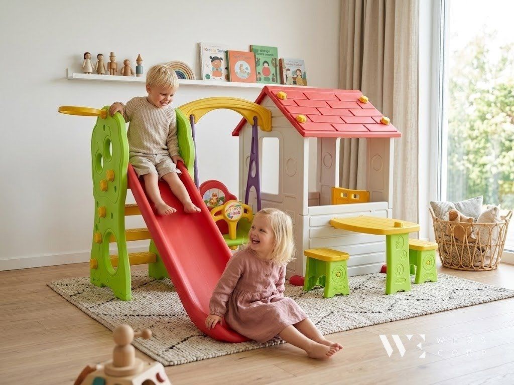Nabídka zahrnuje velmi široký výběr – od hracích podložek pro miminka, dětské kuchyňky, zahradní či sportovní produkty pro děti přes suché bazény s míčky až po interaktivní hračky a další doplňky pro různé věkové kategorie. Produkty jsou často koncipovány tak, aby dětem přinášely nejen zábavu, ale i potřebný rozvoj.
