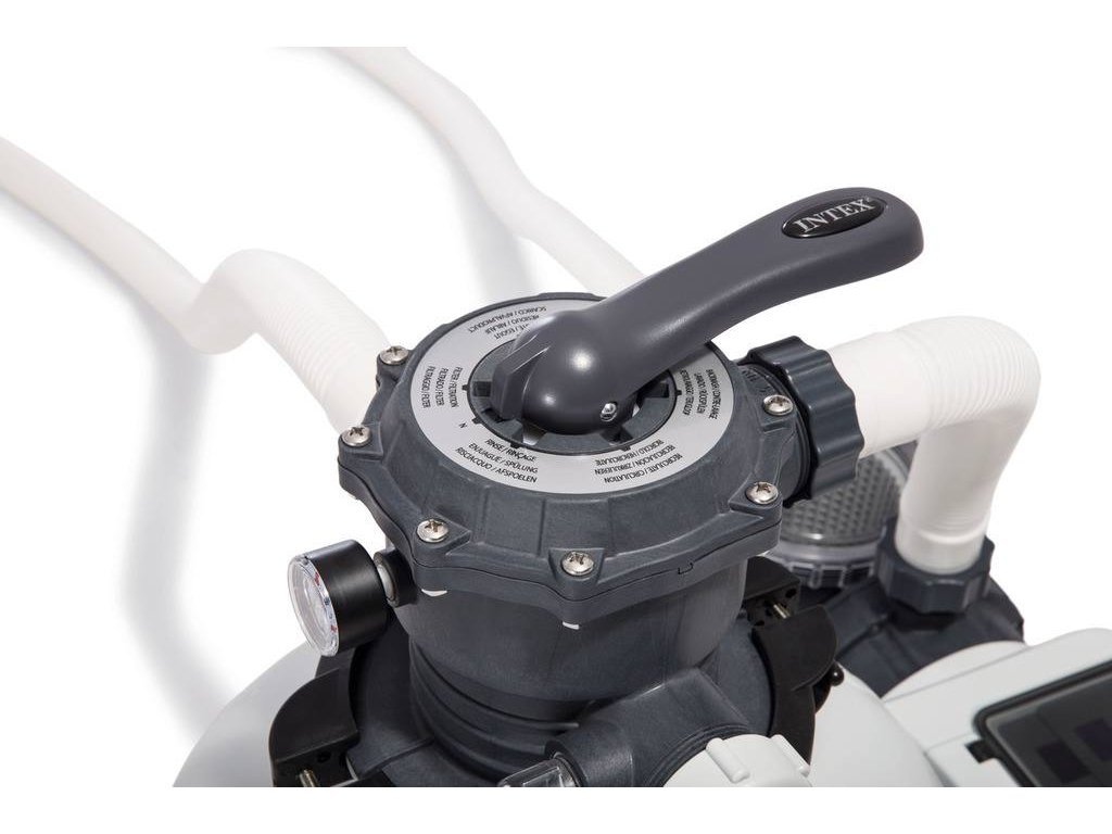Písková filtrace od firmy INTEX pro nadzemní bazény. Filtrační zařízení se skládá z plastové podstavy, filtrační nádoby z polypropylenu beze švů, 6-ti cestného ventilu, manometru a čerpadla. Filtrační nádoba je propojena s čerpadlem flexibilní hadicí.