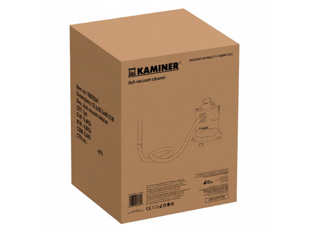 Kaminer Elektrický vysavač na popel 20l 1600W 10927 splňuje všechny normy EU.