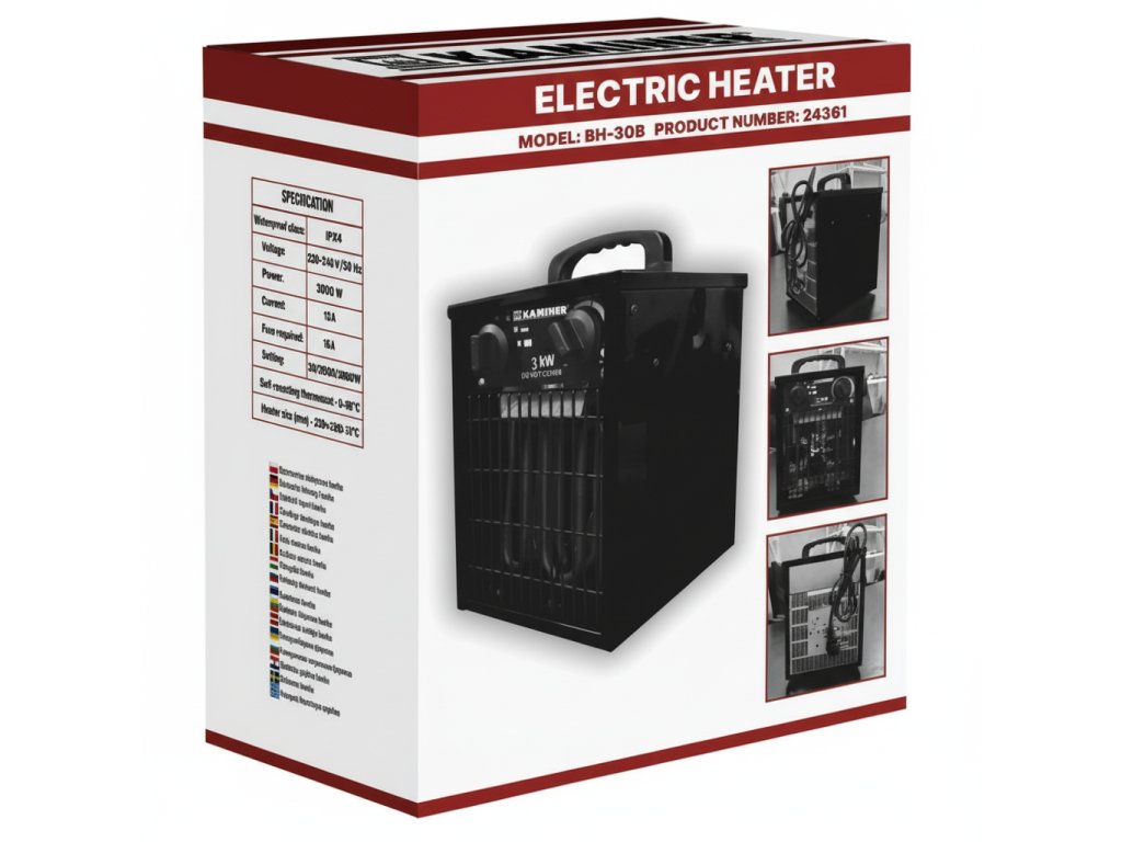Kaminer BH-30A Elektrický topný ventilátor 3000 W černá splňuje všechny normy EU.
