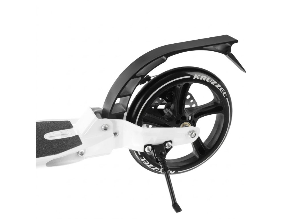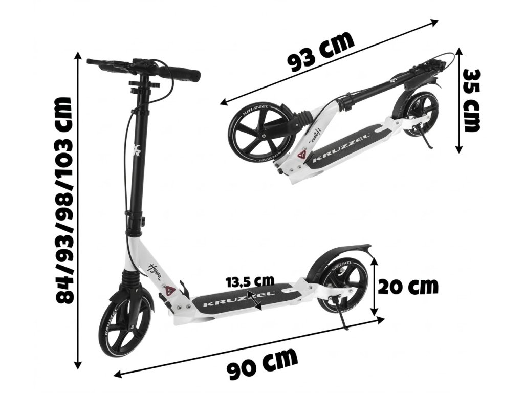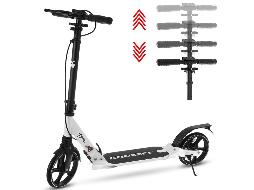 Skládací koloběžka Kruzzel je pevný městský model, navržený pro děti i dospělé. Velká gumová kola 20 cm, ložiska ABEC-9 a dvojitý brzdný systém zajišťují plynulou, bezpečnou a pohodlnou jízdu. Lehká hliníková konstrukce a rychlé skládání z něj dělají ideální řešení pro každodenní použití.