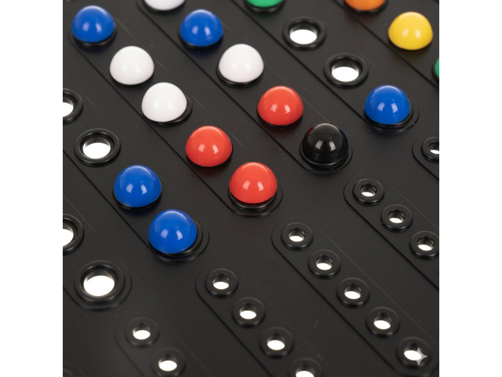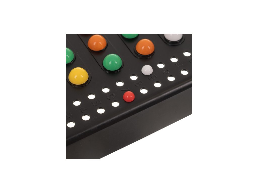 - Soupeř se snaží kód uhodnout. Do první řady pod kódem vloží vlastní kombinaci pěti kolíků.