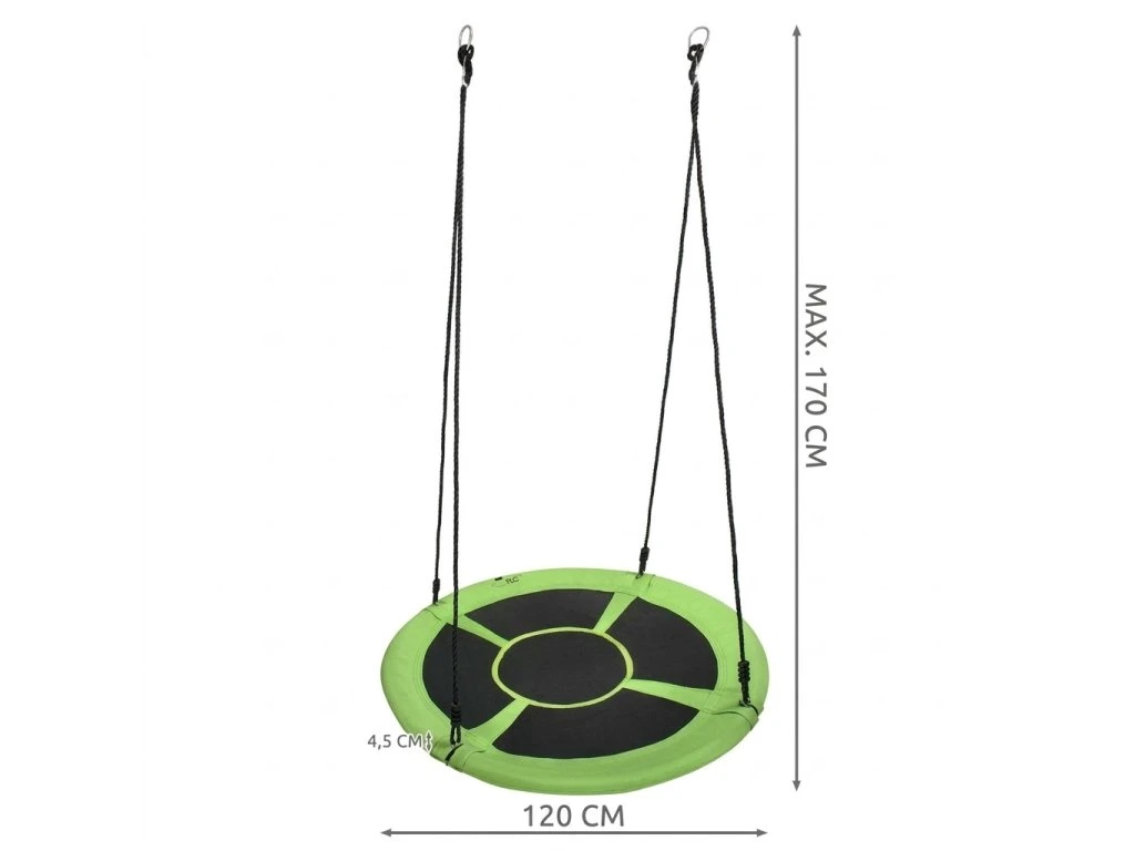 Výškové nastavení - houpačka má možnost nastavení lana, její maximální délka je 170 cm. Díky tomu je houpačka perfektní jak pro malé (nižší výška), tak pro větší děti. To usnadňuje bezpečné nastupování a vystupování. Silná pletená lana o tloušťce 10 mm znamenají, že se při hře na houpačce nemusíte bát o své děti.