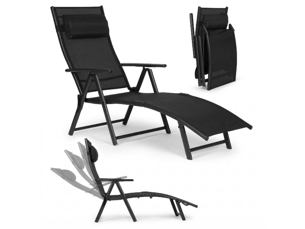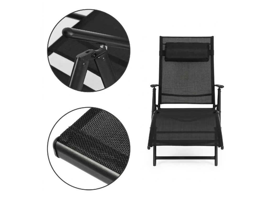 MultiGarden Skládací zahradní plážové lehátko, nastavitelné opěradlo, ocelová konstrukce, černé splňuje všechny normy EU.