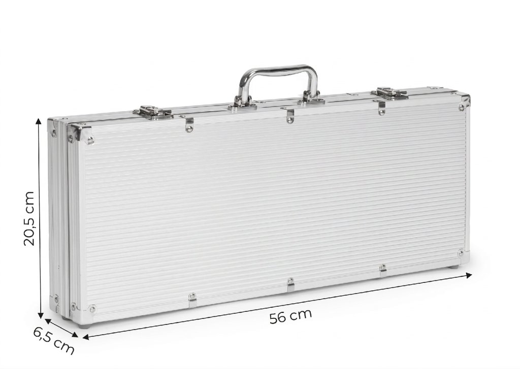 Tato sada na poker a blackjack je perfektní volbou pro nadšence do karetních her. Elegantní uzamykatelné pouzdro obsahuje 500 žetonů, dva balíčky karet, kostky a herní podložku, což poskytuje veškeré vybavení, které potřebujete pro vzrušující hry. Praktické balení usnadňuje skladování a přepravu, takže je ideální pro společenské akce. Je to vynikající volba pro začátečníky i pokročilé hráče. Sada je určena až pro 8 hráčů.