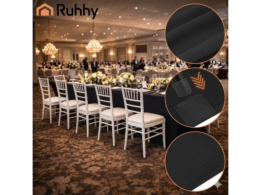 Ubrus Ruhy je praktickým a elegantním řešením pro jakoukoli oslavu, banket nebo firemní akci. Tento opakovaně použitelný flexibilní černý banketní ubrus se perfektně přizpůsobí stolu a vytvoří hladký, esteticky příjemný povrch bez vrásek a záhybů. Je spolehlivou volbou pro cateringové společnosti, svatební plánovače a kohokoli, kdo chce rychle změnit vzhled místa konání.
