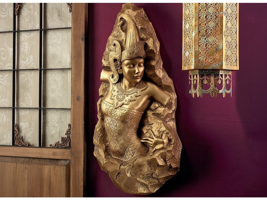 Zachráněna z hlubin času, tato jedinečná taneční socha představuje elegantní reinterpretaci nástěnného panelu ze 19. století. Inspirována tradiční balijskou kulturou, zobrazuje tanečnici zachycenou v ladném gestu, které odráží bohatství asijského umění a jemnost pohybů typických pro klasický tanec. V dialogu mezi východní estetikou a moderním zpracováním vznikl dynamický reliéf odlité z kvalitní sochařské pryskyřice. Povrch je ručně malován ve zlatých tónech a připomíná půvab a symboliku starobylého divadla.